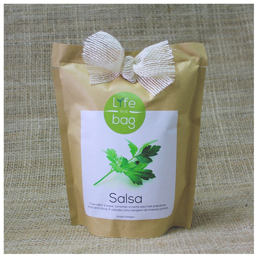 Com este saco pode cultivar Salsa (Petroselium Crispum) de modo biológico, dentro de casa e de uma forma muito simples. Pode também ser uma alternativa diferente na hora de oferecer um presente.
