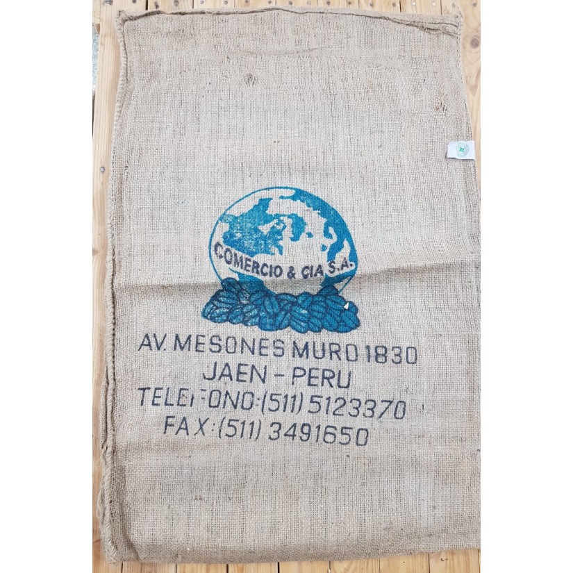 Jute bags from various World Coffees brands manufactured in India with ecological certificate.